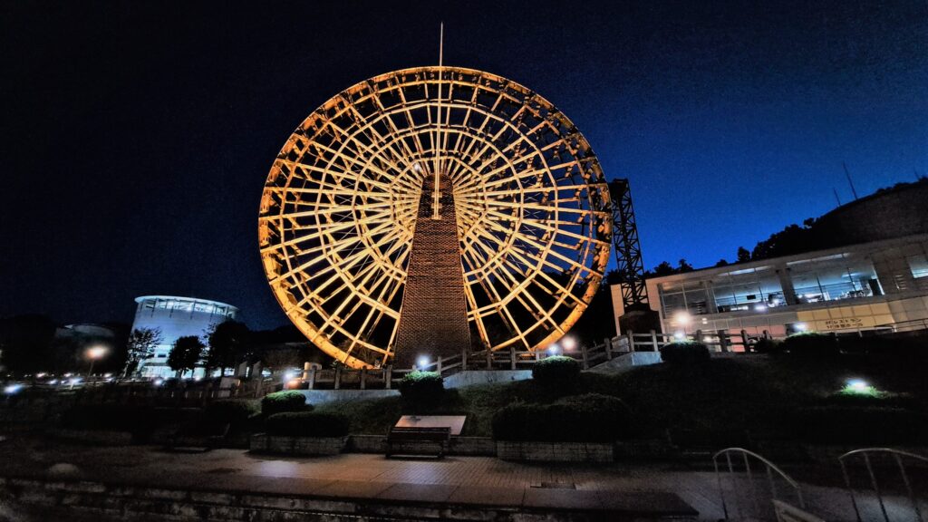 お日様が沈む16:00過ぎから閉館まで、「大水車」の他に「大陶板画」、「本館」などを光で照らします!