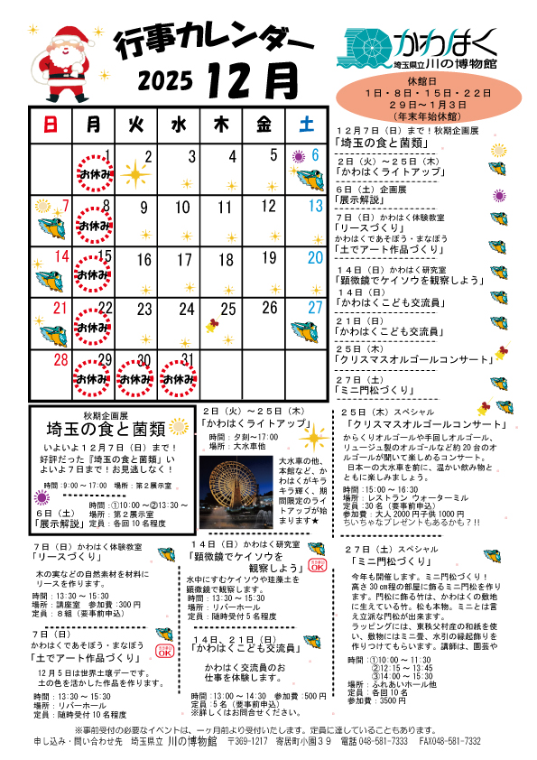 12月29日~1月3日まで、かわはくはお休みです。来年は1月4日から開館します。